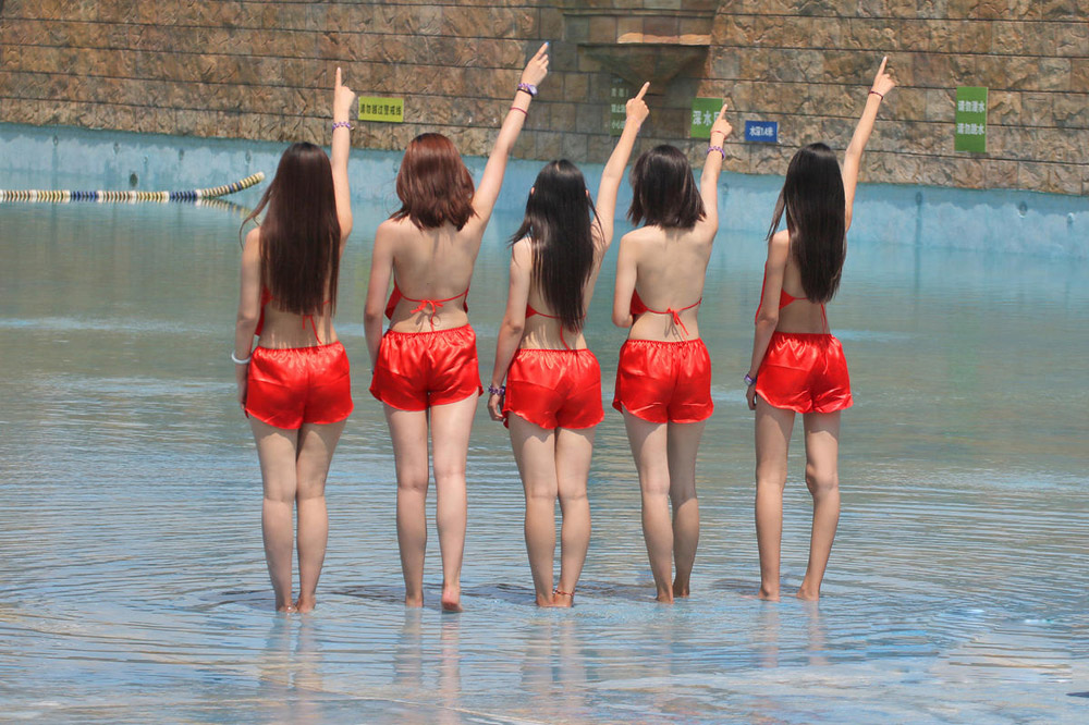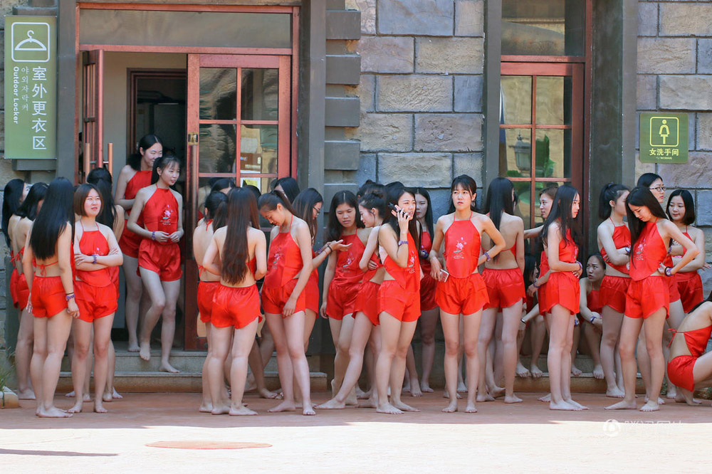 游客现场领略"中式比基尼"美女秀,眼睛看直。"肚兜节",有数百名身材火辣的网红和模特参加。主办方介绍,"首届肚兜节"活动旨在结合传统中国风,用最典型的东方女性形象呼吁大家关爱女性。