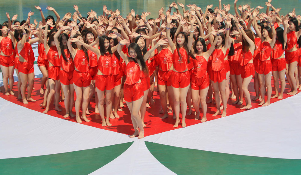 数百女网红穿红肚兜巡游画面劲爆眼球