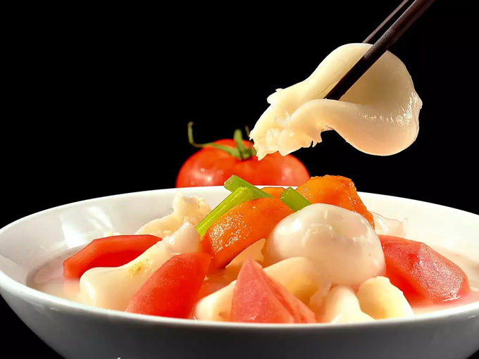 营养鱼肚加入时令枇杷果与鲜茄,酸甜开胃又滑嫩清新,美容养颜。